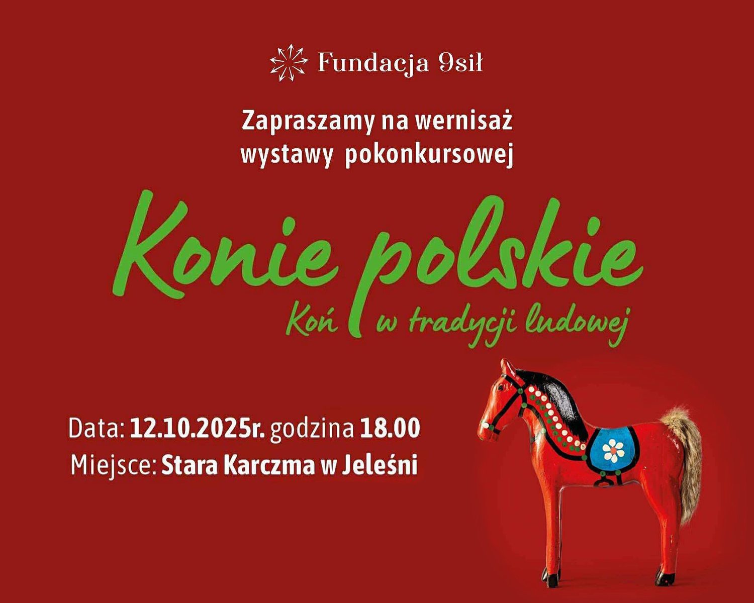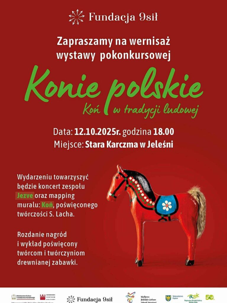Fundacja 9sił wraz z partnerami zaprasza na wyjątkowe wydarzenie kulturalne – wernisaż wystawy pokonkursowej „Konie polskie. Koń w tradycji ludowej”, który odbędzie się 12 października 2025 roku o godzinie 18:00 w klimatycznej przestrzeni Starej Karczmy w Jeleśni.
