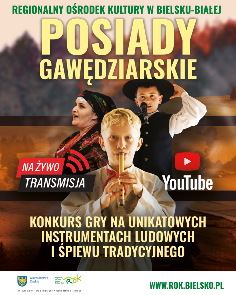 Regionalny Ośrodek Kultury w Bielsku-Białej serdecznie zaprasza do oglądania transmisji z 34. Posiadów Gawędziarskich oraz 36. Konkursu Gry na Unikatowych Instrumentach Ludowych i Śpiewu Tradycyjnego.