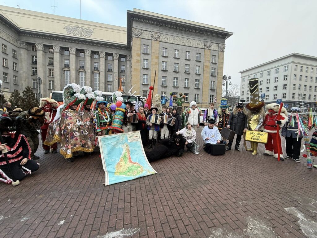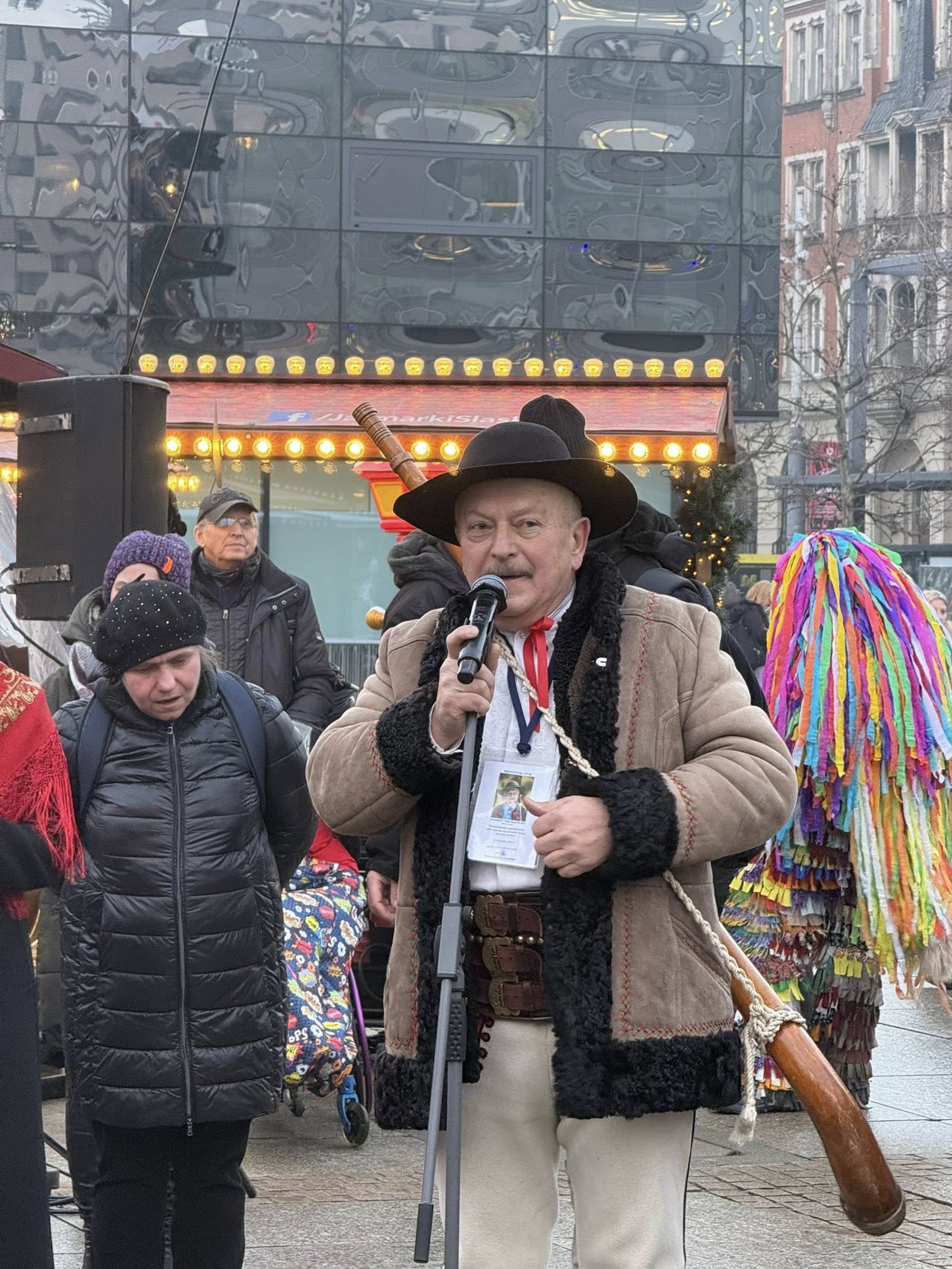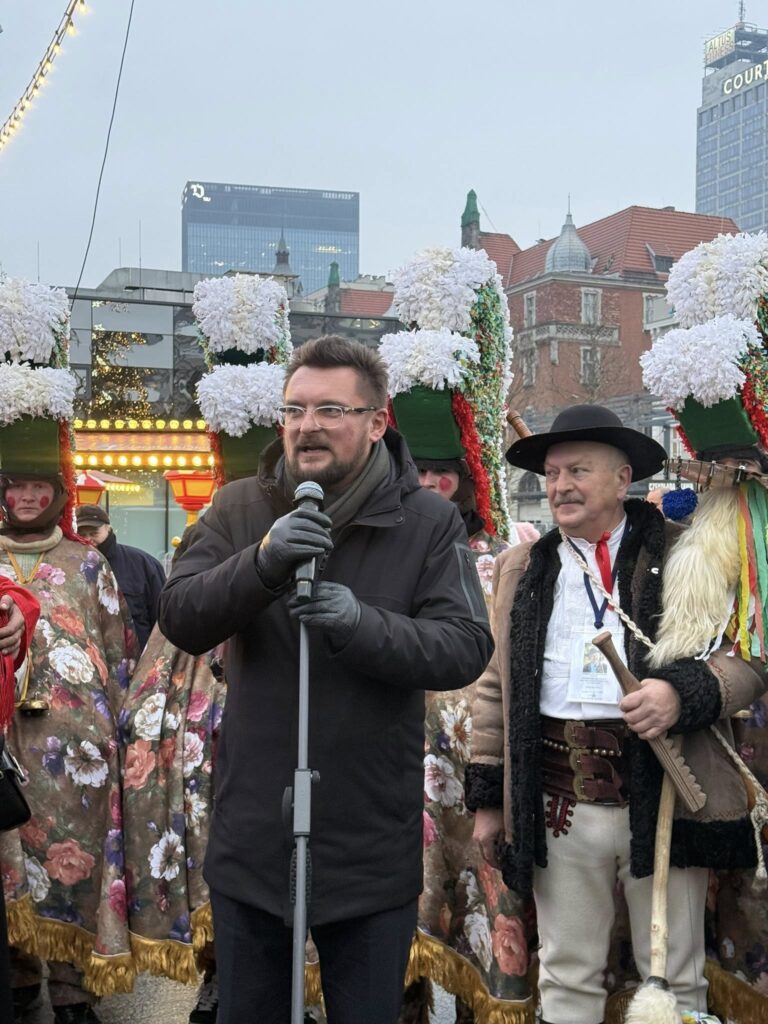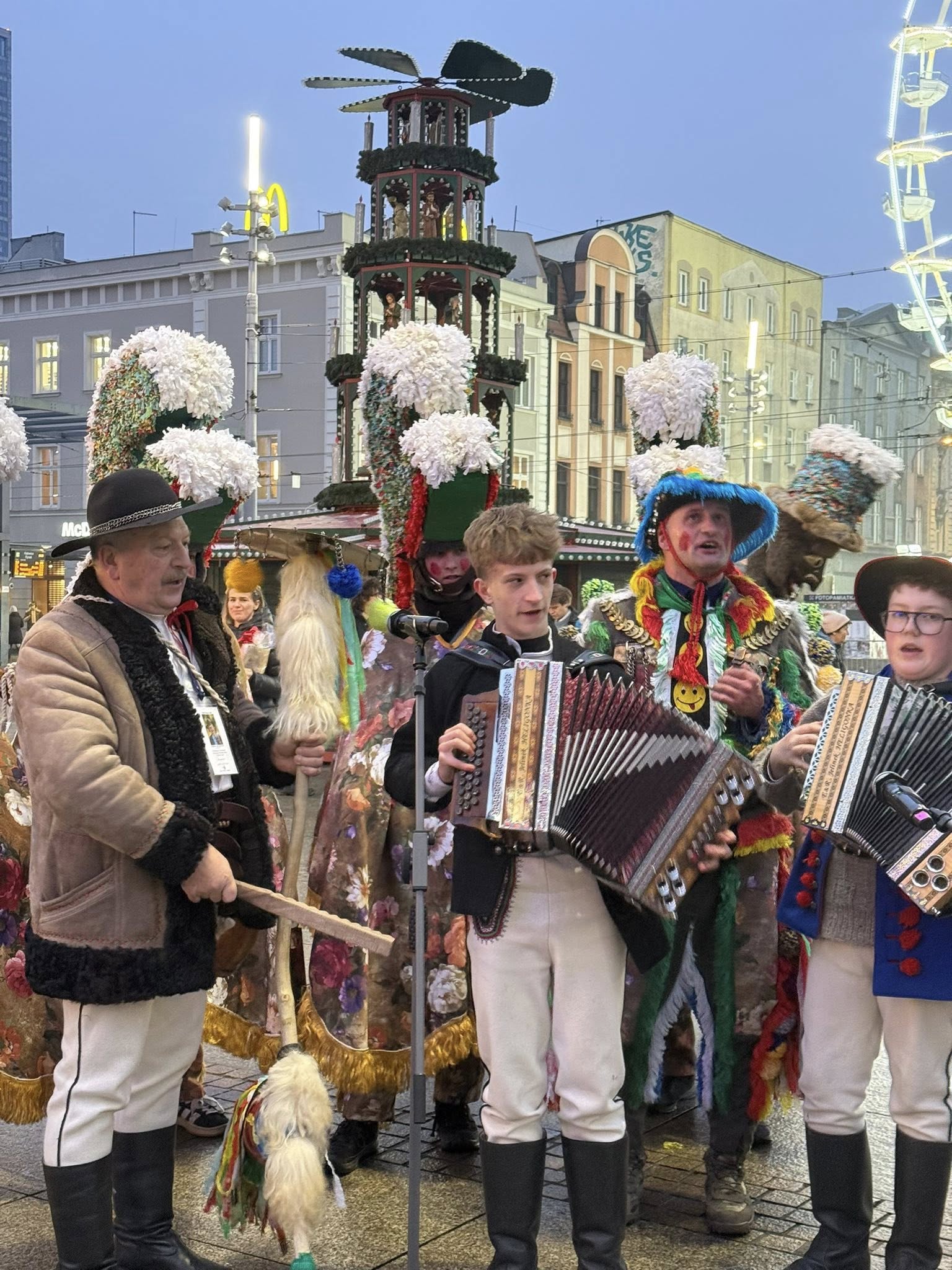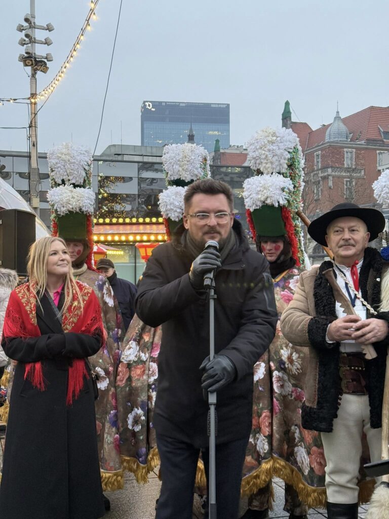 Grupy kolędnicze z Żywiecczyzny — w tradycyjnych strojach, z dźwiękami dzwonków, muzyką i radosnym zgiełkiem — dotarły do Katowic, by wspólnie powitać nowy rok i podtrzymać bogate dziedzictwo ludowe regionu.